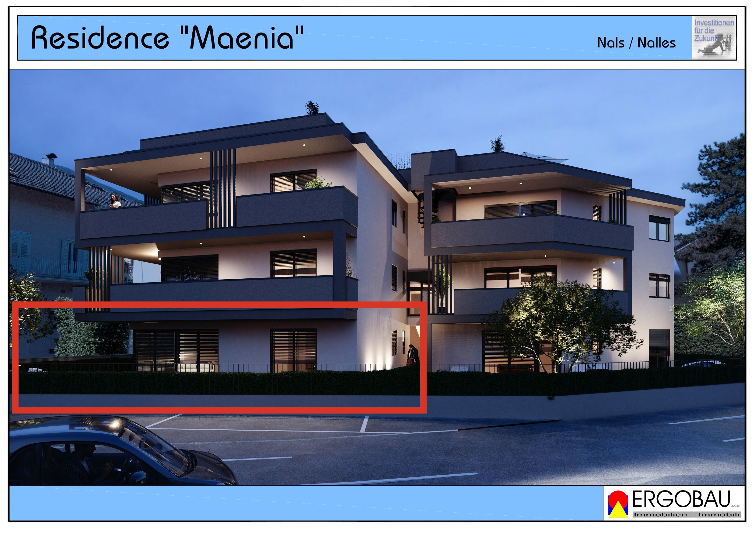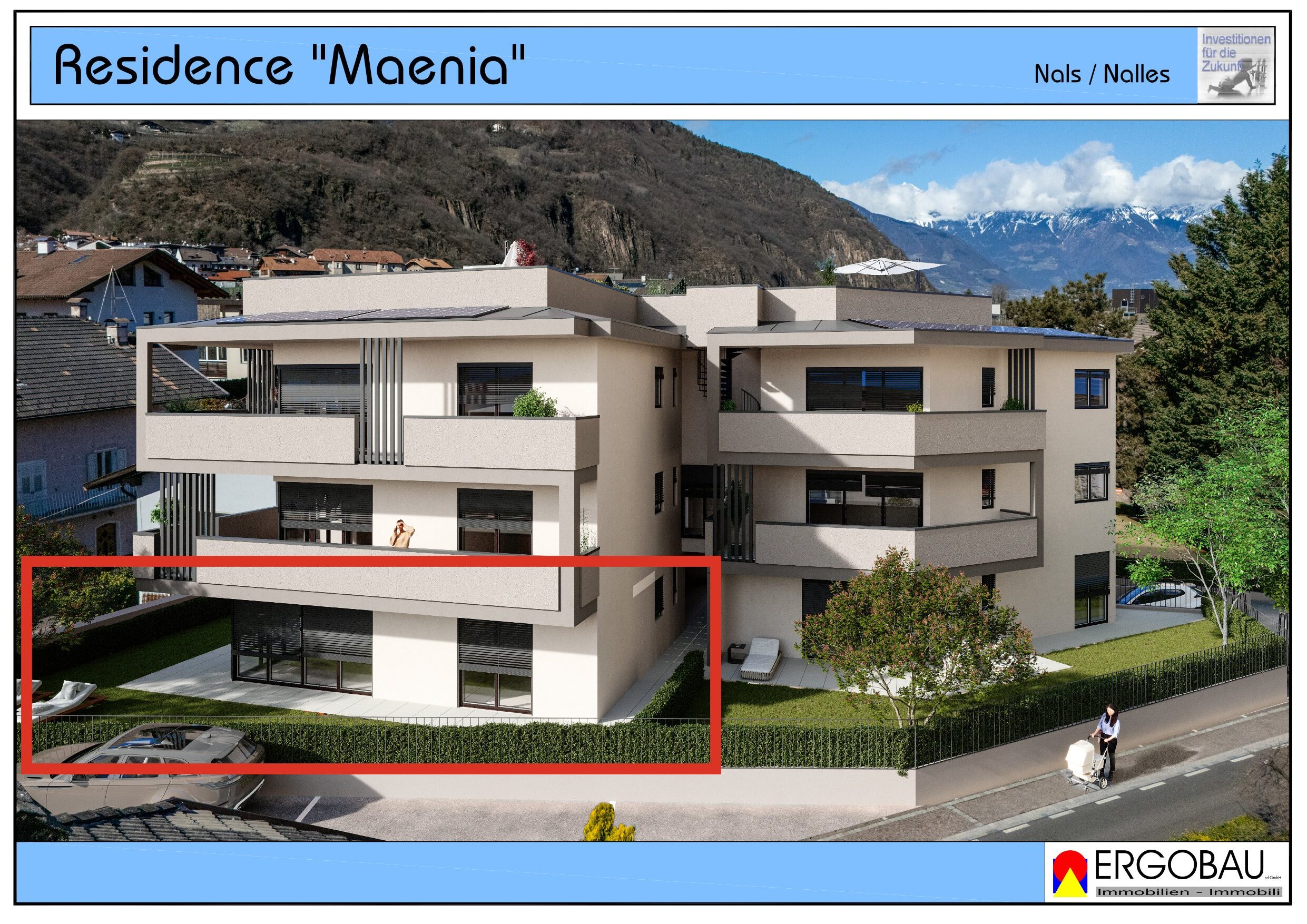 - 1.Ökologische Nachhaltigkeit: Das Gebäude der Residence Maenia wird nach den hohen Standards des Klimahaus Nature gebaut, um ein gesundes und nachhaltiges Lebensumfeld zu gewährleisten.